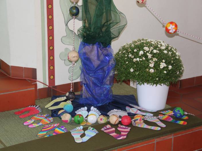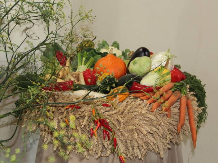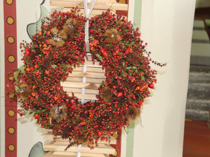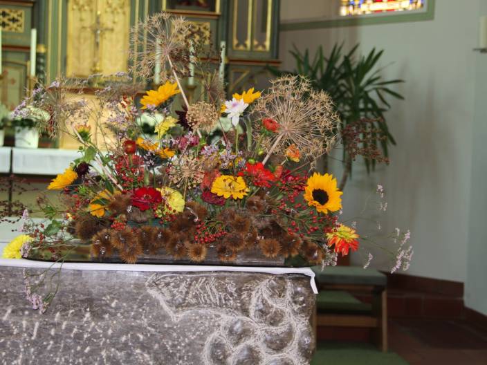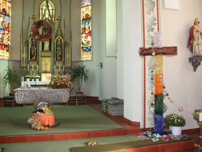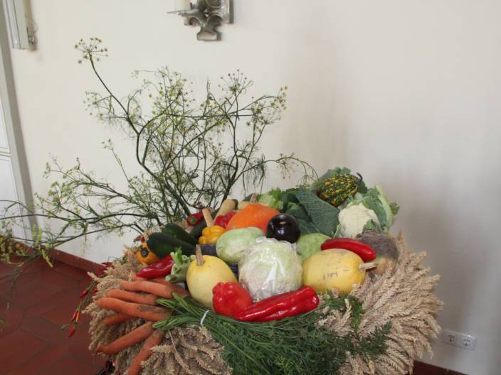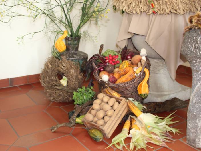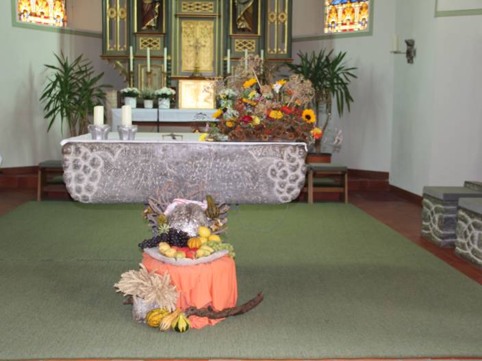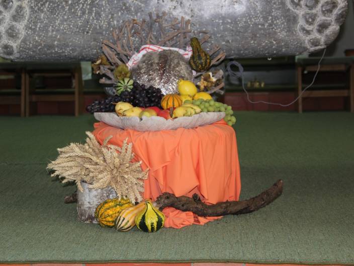 Fleißige Hände hatten den Raum um den Altar wunderschön mit den Früchten des Feldes und der menschlichen Arbeit geschmückt.