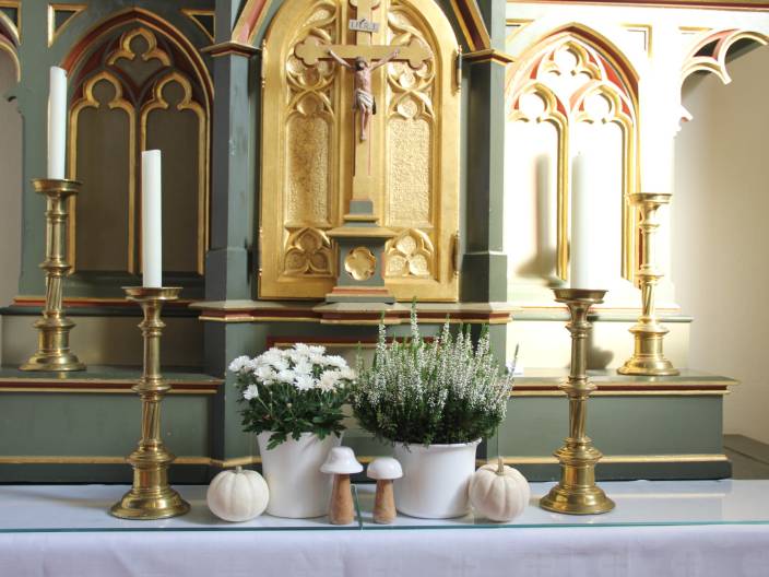 Nehmen sie sich ein paar Sekunden Zeit um die wunderschöne Ausschmückung unseres Altarraums zu bewundern.